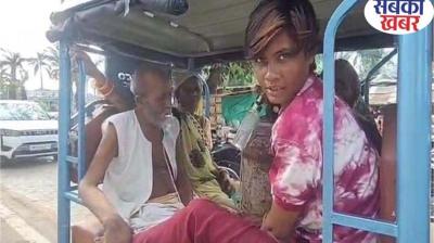 ई-रिक्शा में ऑक्सीजन सिलेंडर के साथ मरीज को ले जा रहे परिजन, स्वास्थ्य व्यवस्था की पोल खोलती तस्वीर