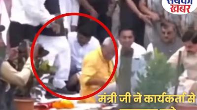एमपी में ‘मंत्री विजय शाह’ ने कार्यकर्ता से पहनवाए जूते, वीडियो हुआ वायरल