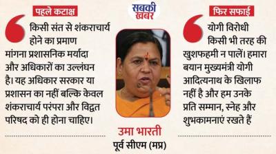 शंकराचार्य विवाद: उमा भारती के ट्वीट से सियासी हलचल, पहले प्रशासन पर सवाल; फिर योगी सरकार के समर्थन में सफाई