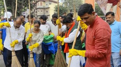 इंदौर में स्वच्छताकर्मी अवकाश पर मंत्री,मेयर,अफसरों ने झाडू लगाकर की सड़कें साफ