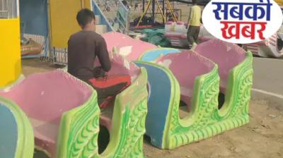 ग्वालियर व्यापार मेला 25 दिसंबर से:भव्य तैयारियां हो रहीं , सैलानियों के लिए झूला सेक्टर में मजदूर रंग-रोगन कर झूले सजा रहे