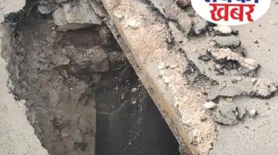 ग्वालियर में फिर धसकी सड़क: नदी गेट पर माधवराव सिंधिया की प्रतिमा के सामने गहरा गड्डा