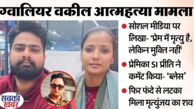 ग्वालियर के वकील मृत्युंजय सिंह चौहान की आत्महत्या के मामले में गोला का मंदिर थाना पुलिस ने 22 दिन बाद बड़ी कार्रवाई की है। पुलिस ने मुरैना पुलिस में पदस्थ...