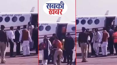 सरकारी विमान से छत्तीसगढ़ में लैंड हुए बाबा बागेश्वर, वर्दी में पुलिसकर्मी ने सैल्यूट मारकर छुए पैर