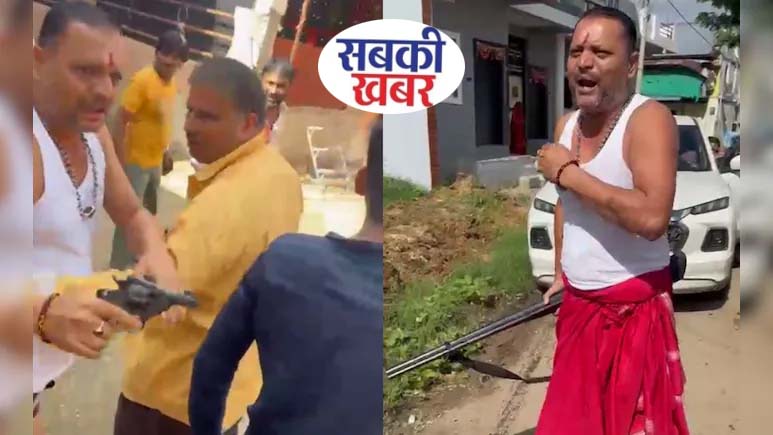 चड्ढी-बनियान में बीजेपी के नेता की दबंगई ! हाथापाई में धोती खुली पर लहराते रहे रिवाल्वर