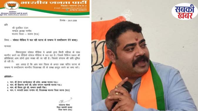 मामले की गंभीरता को देखते हुए जिला भाजपा महामंत्री ने संज्ञान लेते हुए नागौद मंडल अध्यक्ष को कारण बताओ नोटिस जारी किया है। नोटिस में स्पष्ट किया गया है कि इस प्रकार की घटनाएं पार्टी की गरिमा, अनुशासन और छवि के खिलाफ हैं। संगठन ने पूरे मामले में मंडल अध्यक्ष से जवाब तलब किया है।