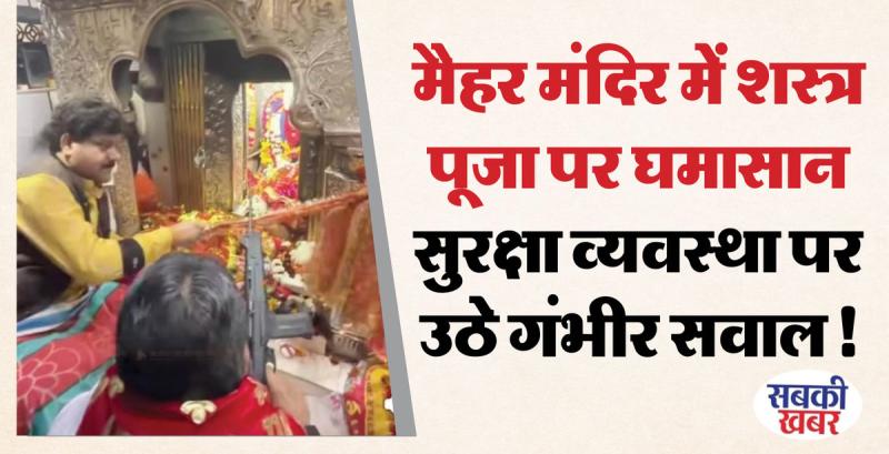 मैहर के मां शारदा मंदिर में गर्भगृह के भीतर शस्त्र पूजा का वीडियो वायरल होने से विवाद खड़ा हो गया है। आरोप है कि नियमों के बावजूद राजा भैया ने पूजा की। इससे मंदिर सुरक्षा, नियमों में भेदभाव और प्रशासन की भूमिका पर सवाल उठ रहे हैं। अब तक कोई आधिकारिक बयान नहीं आया है।