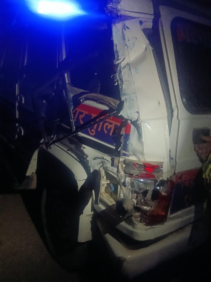 पटना में हाईवा ने पुलिस गाड़ी को मारी टक्कर, रेलिंग से टकराकर लगी आग
