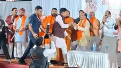 मार नहीं, ये 'प्रसाद' है! भिंड के संत ने विधायक को जड़े दनादन घूंसे, माला भी फेंकी; फिर भी हाथ जोड़कर खड़े रहे माननीय!