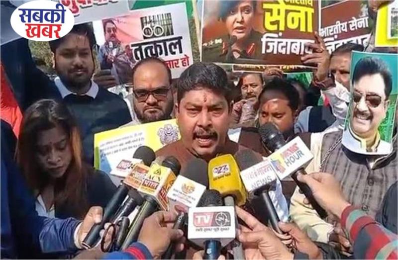 देश की जनता की भावनाओं को आहत करने वाले भाजपा सरकार के मंत्री विजय शाह के विरुद्ध सुप्रीम कोर्ट द्वारा केस दर्ज किए जाने के स्पष्ट आदेश के बावजूद अब तक कोई कार्रवाई न होने से जनमानस में भारी रोष व्याप्त है। इसी लोकतांत्रिक आक्रोश को स्वर देने के लिए मध्यप्रदेश कांग्रेस महासचिव अमित शर्मा के नेतृत्व में आज प्रदेश कांग्रेस कार्यालय के सामने विरोध प्रदर्शन किया गया। कांग्रेस महासचिव अमित शर्मा ने प्रदर्शन को संबोधित करते हुए कहा कि “यह अत्यंत चिंताजनक और शर्मनाक है कि जिस मंत्री पर सुप्रीम कोर्ट ने केस दर्ज करने के निर्देश दिए हैं, उसे भाजपा सरकार खुला संरक्षण दे रही है। यह न केवल संविधान का अपमान है, बल्कि देश की जनता की भावनाओं के साथ सीधा खिलवाड़ है।”