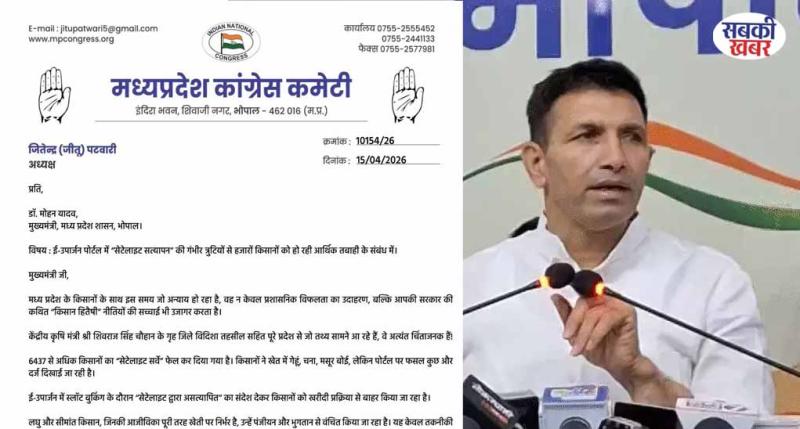 पटवारी ने अपने पत्र में कहा कि प्रदेश में किसानों के साथ जो हो रहा है, वह केवल प्रशासनिक विफलता नहीं, बल्कि सरकार की नीतियों की सच्चाई भी उजागर करता है। उन्होंने दावा किया कि केंद्रीय कृषि मंत्री शिवराज सिंह चौहान के गृह क्षेत्र विदिशा सहित पूरे प्रदेश से चिंताजनक मामले सामने आ रहे हैं। उनके अनुसार 6,437 से अधिक किसानों का ‘सैटेलाइट सर्वे’ फेल कर दिया गया है, जबकि खेतों में गेहूं, चना और मसूर जैसी फसलें मौजूद हैं, लेकिन पोर्टल पर अन्य फसल दर्ज दिखाई जा रही हैं।