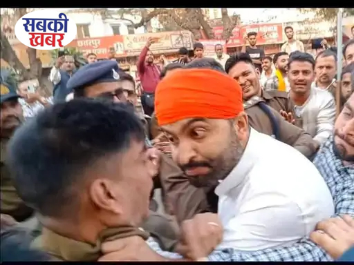 छतरपुर में प्रदर्शन के दौरान बवाल: भाजपा युवा मोर्चा जिलाध्यक्ष ने पकड़ी पुलिसकर्मी की कॉलर, वीडियो वायरल