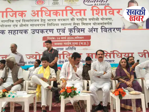 सामाजिक कल्याण विभाग द्वारा शहर के शुभ विदाई गार्डन में सामाजिक अधिकारिता शिविर का आयोजन किया गया था। इसमें केंद्रीय मंत्री ज्योतिरादित्य सिंधिया मुख्य अतिथि के रूप में मौजूद रहे। कार्यक्रम में जिले के प्रभारी मंत्री गोविंद सिंह राजपूत, भाजपा जिलाध्यक्ष धर्मेंद्र सिकरवार, कलेक्टर किशोर कुमार कन्याल और एसपी अंकित सोनी भी मौजूद रहे। यहां सभी की मौजूदगी में दिव्यांगों को किट वितरित की गईं। कार्यक्रम को संबोधित करते हुए विधायक पन्नालाल शाक्य ने कहा कि सरकार ने दिव्यांगों के लिए ये जो प्रयत्न किया है, वो उनके जीवन में आगे बढ़ने के लिए है। विधायक ने आगे कहा, "नहीं तो हम केवल इसी के लिए घूम रहे हैं क्या कि ट्राइसाइकिल उठाई और मंदिर के आगे, चौराहे पर घूम रहे हैं और हाथ फैला रहे हैं कि दे देना दस रुपए भगवान के नाम पे। इसके लिए नहीं दी है साइकिल।" उन्होंने दिव्यांगों को नसीहत देते हुए कहा, "सामाजिक हित की भी सोचो। जैसे सरकार हमारे बारे में सोच रही है।"