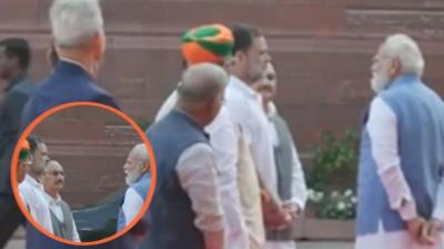 संसद परिसर में पीएम मोदी और राहुल गांधी की मुलाकात, हाथ मिलाकर हुई लंबी बातचीत