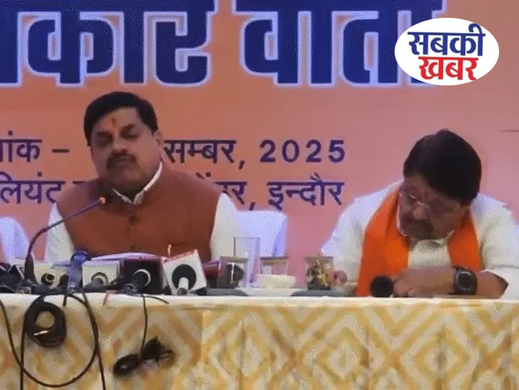 बैठक के बाद मुख्यमंत्री ने प्रेस काॅन्फ्रेंस की। इस दौरान रोचक बात देखने को मिली। मंच पर सीएम के साथ मंत्री कैलाश विजयवर्गीय, सांसद शंकर लालवानी, मंत्री तुलसीराम सिलावट और महापौर पुष्यमित्र भार्गव बैठे थे।