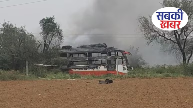 जयपुर- हाईटेंशन लाइन से बस में आग, कई सिलेंडर फटे:2 की मौत, 10 से ज्यादा झुलसे