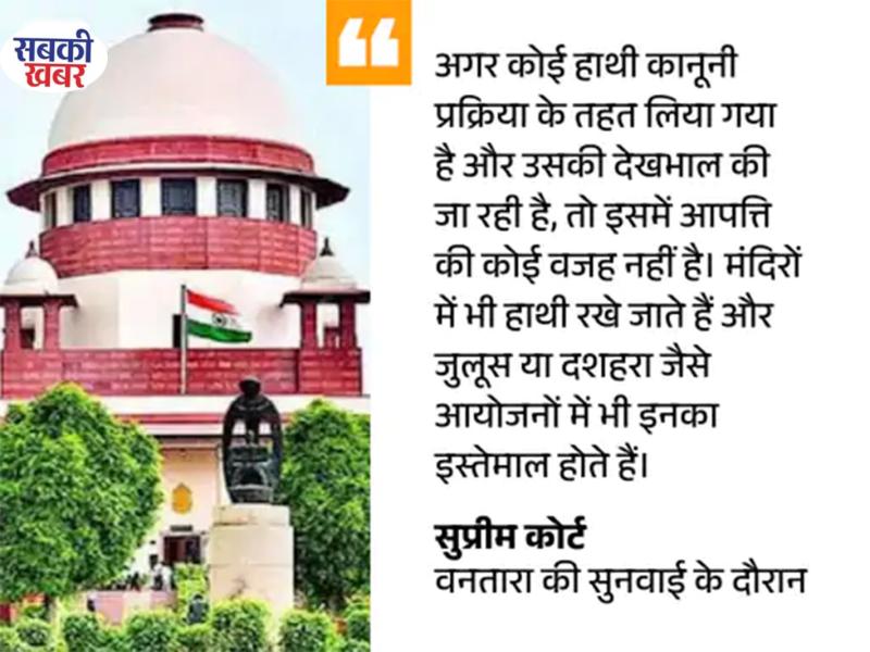 सुप्रीम कोर्ट ने सोमवार को कहा, 'जामनगर स्थित वनतारा वाइल्डलाइफ रेस्क्यू एंड रिहैबिलिटेशन सेंटर में जानवरों की खरीद-बिक्री नियमों के दायरे में हुई है।' इस सेंटर को अंबानी परिवार का रिलायंस फाउंडेशन चलाता है। कोर्ट ने कहा कि विशेष जांच दल (SIT) की रिपोर्ट में कोई गड़बड़ी नहीं मिली है। जस्टिस पंकज मित्तल और जस्टिस पीबी वराले की बेंच ने कहा,
