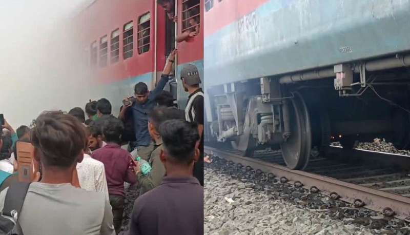 जनरल कोच के पहुए के पास लगी आग