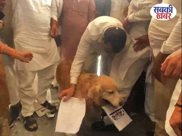 कुत्ते के गले में टांगी 'कलेक्टर' की तख्ती