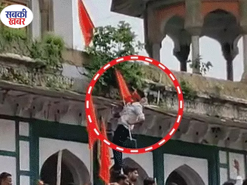 यूपी के फतेहपुर में मकबरे पर भगवा लहराया, बवाल-पथराव, तोड़फोड़:हिंदू संगठनों का मंदिर होने का दावा