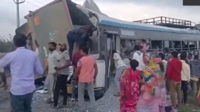 तेलंगाना के रंगारेड्डी जिले में हैदराबाद-बीजापुर नेशनल हाईवे पर सोमवार सुबह गिट्टी से लदे डंपर ने तेलंगाना रोड ट्रांसपोर्ट कॉर्पोरेशन (TRTC) बस को टक्कर मार दी। न्यूज एजेंसी ANI के...
