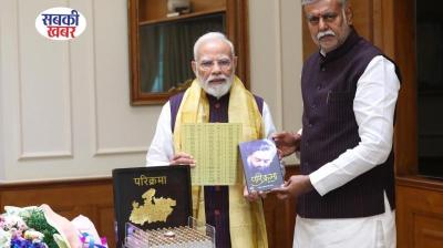पंचायत मंत्री श्री पटेल ने प्रधानमंत्री को अपनी पुस्तक 'परिक्रमा-कृपा सार' भेंट की