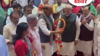 मोदी का ऑपरेशन सिंदूर की सफलता पर सम्मान:राजनाथ ने हार पहनाया