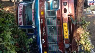 बैतूल में पलटी बस, 15 यात्री हुए घायल, स्वास्थ्य केंद्र में भर्ती कराया