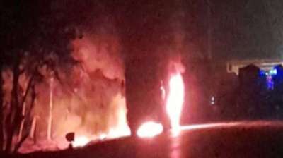 चलते ट्रक का टायर फटा, देखते ही देखते आग की लपटों में घिरा वाहन